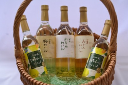 小田原わいんでは、梅、みかん、レモンを使用してフルーツワインを作っています。